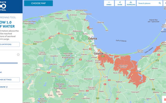 Badacze należący do amerykańskiej Climate Central, organizacji non-profit, zajmującej się analizą danych i rozpowszechnianiem wiedzy z zakresu klimatologii, stworzyli narzędzie, które umożliwia sprawdzenie tego, jak rosnący poziom wód będzie przekładał się na sytuację w XXI wieku. Interaktywna mapa pokazuje na czerwono obszary, które do 2100 roku prawdopodobnie znajdą się "poniżej rocznego poziomu zalania".