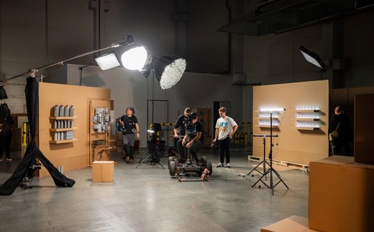 Na nagraniach widać tysiące magazynowanych opakowań z tektury falistej. Tła, na których występują przedstawiciele dwóch wspomnianych branż e-commerce, również zostały wykonane z tektury.
